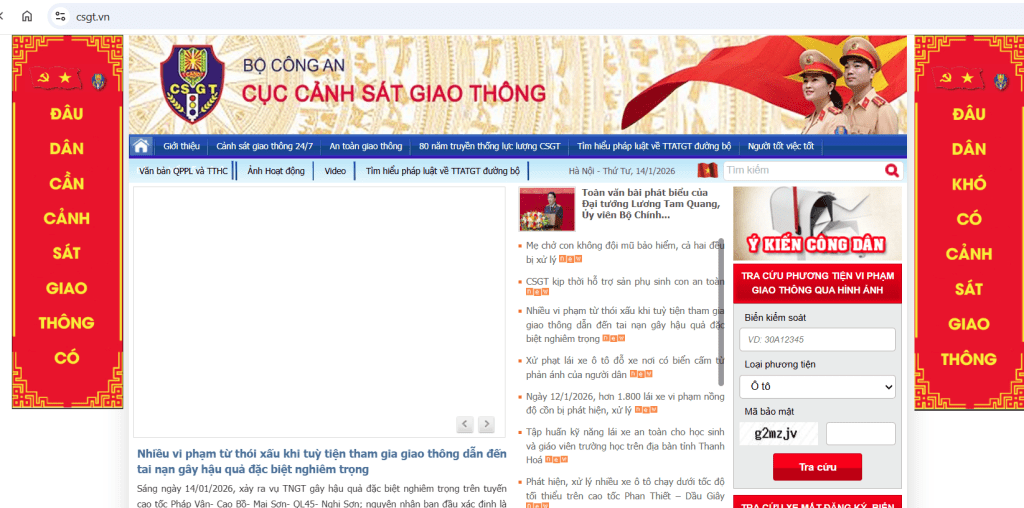 Cách 1: Tra cứu trên trang Cục Cảnh sát giao thông (Khuyên dùng)